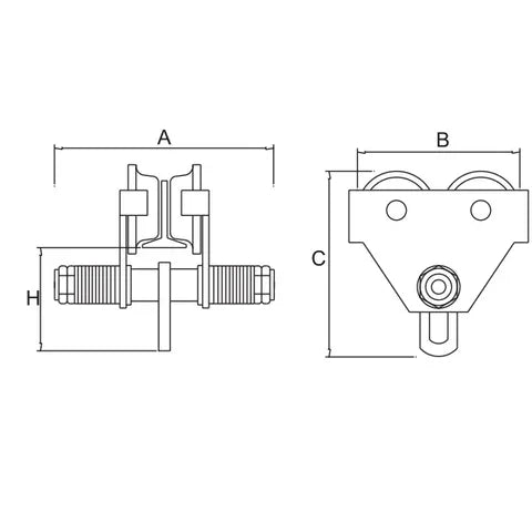 ITM PUSH GIRDER TROLLEY, 500 KG, 64-152MM BEAM WIDTH