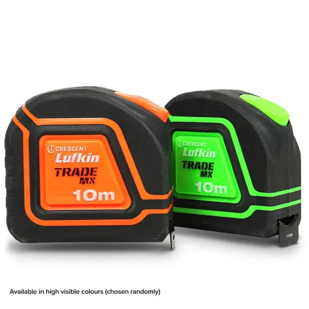 Crescent Lufkin has built its reputation on accuracy and durability and the TRADE MX tape measure series is no exception. This tape measure is right at home in the hands of professionals who want a tape measure that works as hard as they do. The compact and ergonomic case design features Hi-Viz colours to easily find on the job and is constructed of tough ABS plastic with TPR rubber co-molding for increased user comfort. The blade graphics are clear and precise, every blade is protected with Nylon coating that exceeds industry standards for abrasion and corrosion resistance. End hook strength is supported by an industry leading 4 rivets to increase the life of the tape measure.