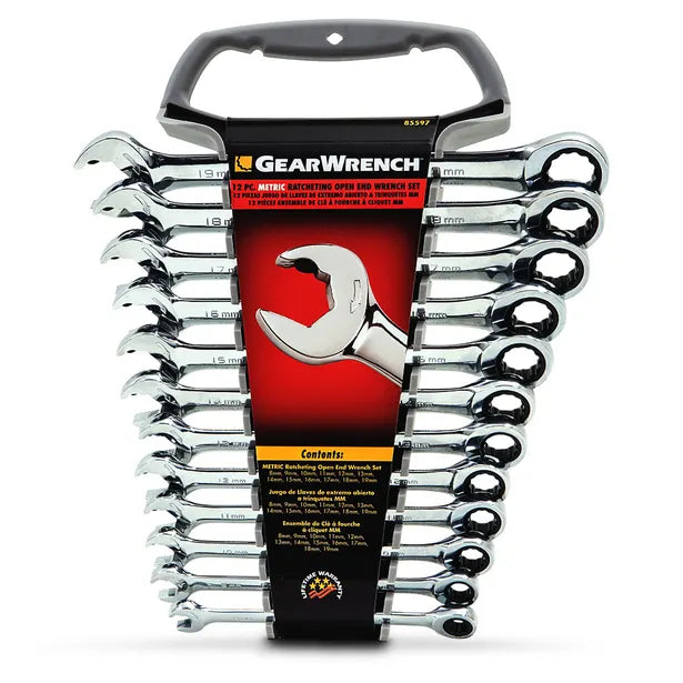 GEARWRENCH 12 PIECE 12 POINT OPEN END RATCHETING METRIC WRENCH SET 85597