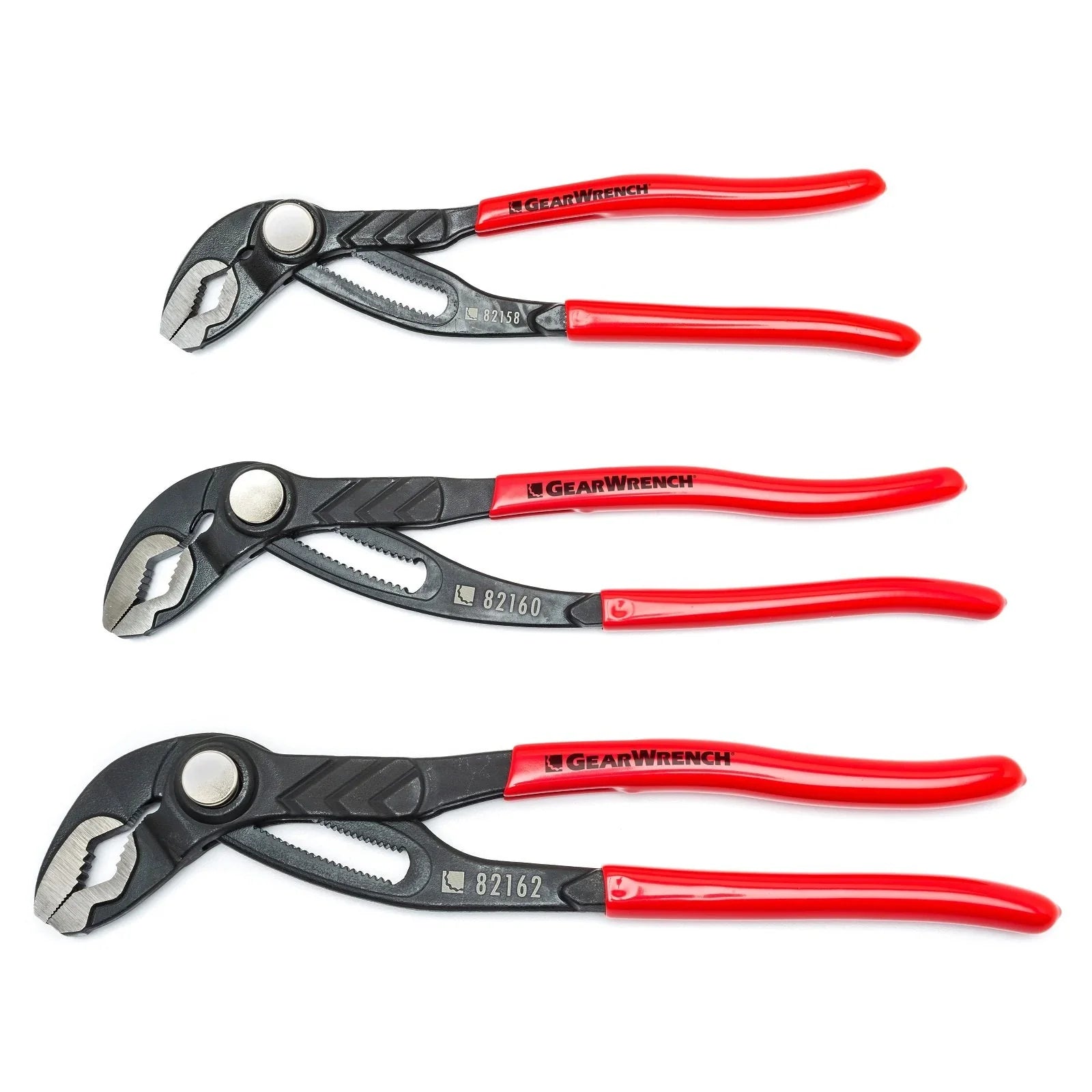 GEARWRENCH 82118 3 Piece Push Button Tongue and Groove Plier / Multi Grip Set