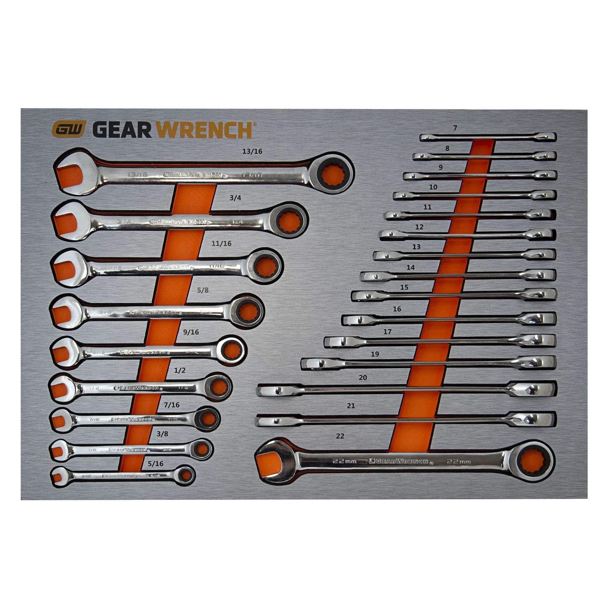 GEARWRENCH 83990 Original 24 Piece Ratcheting Spanner Wrench Set Metric & SAE in EVA Tray