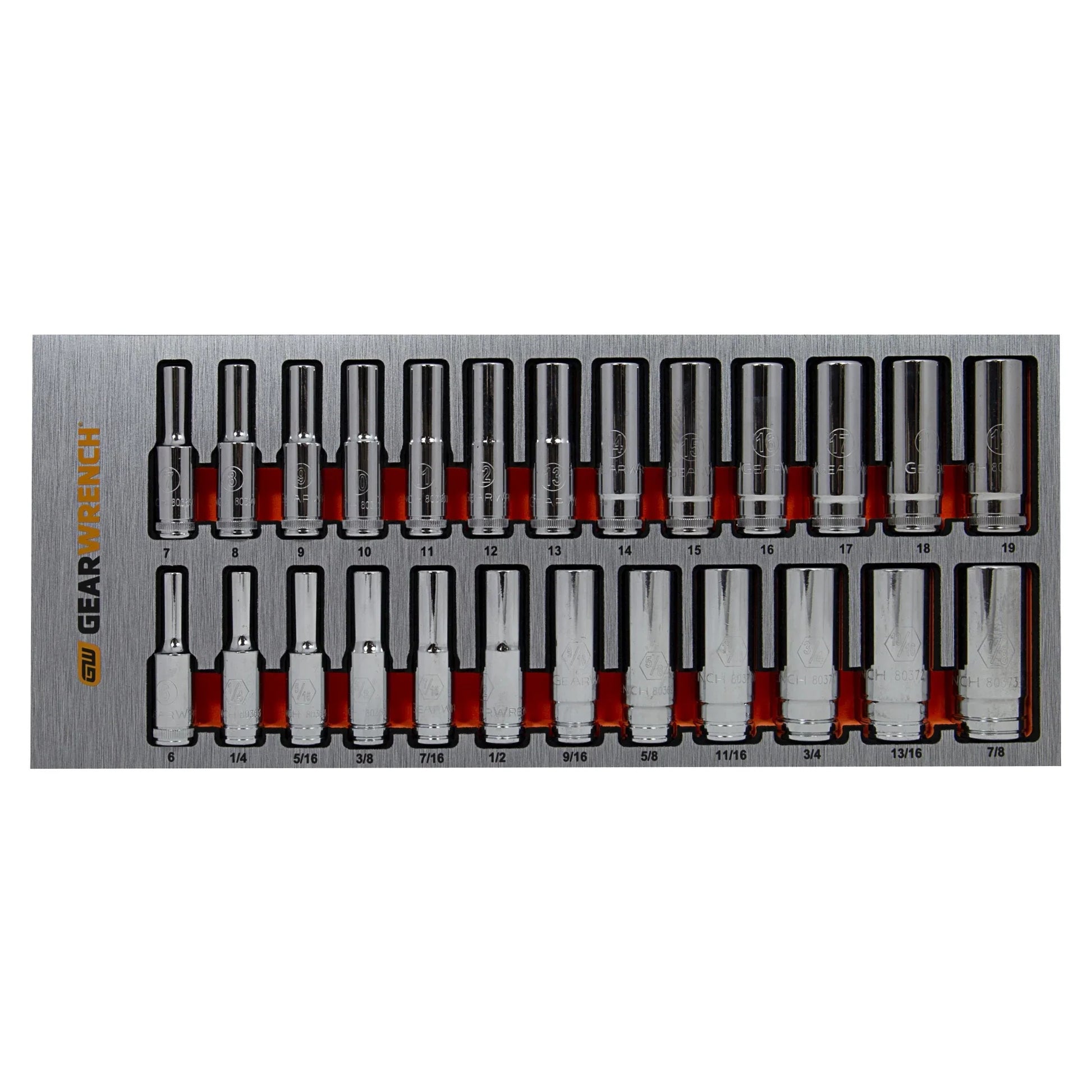 GEARWRENCH 83996 25 Piece 3/8″ Drive 6 Point Deep Socket Set Metric & SAE in EVA Tray