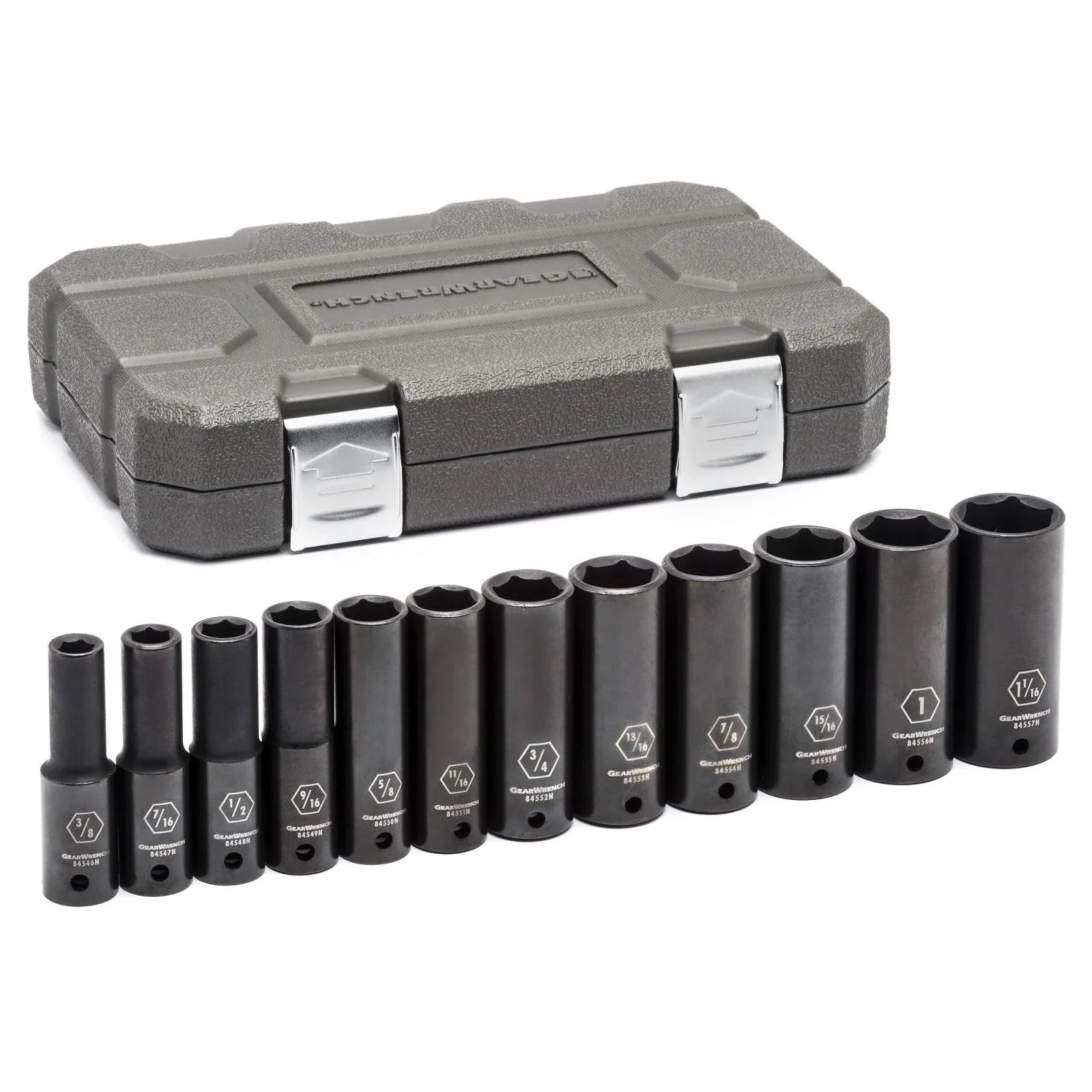 GEARWRENCH 84942N 12 Piece 1/2 Inch Drive Impact Socket Set Deep SAE