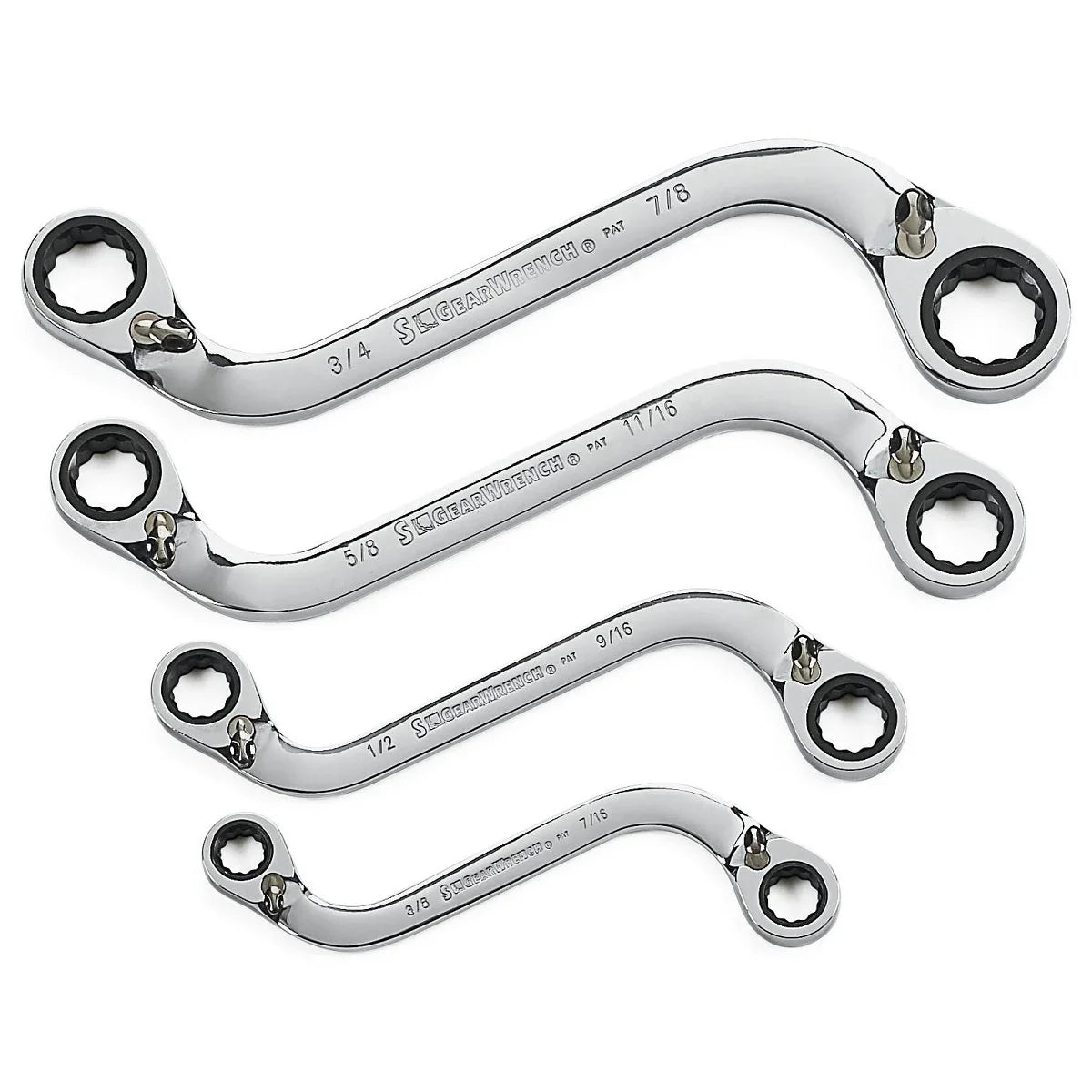 GEARWRENCH 85399 4 Piece S-Shape Reversible Double Box Ratcheting Wrench Set SAE