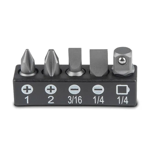 This set also comes with a versatile set of bits including #1 and #2 Phillips driver bits, 3/16 and 1/4-Inch slotted driver bits, and a 1/4-Inch drive socket adapter. So, there's no need to go back to the toolbox.