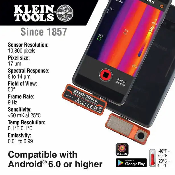 - Klein Tools Thermal Imager Android® App is available for free in Google Play™ store