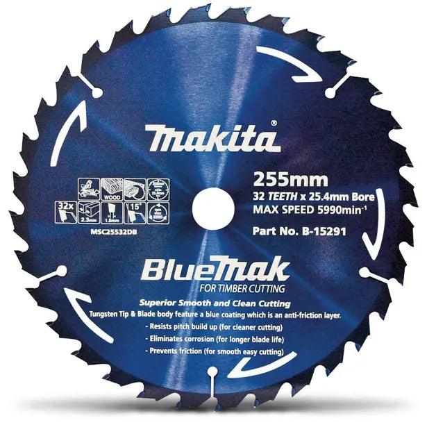 MAKITA 255MM 32T TCT CIRCULAR SAW BLADE FOR WOOD CUTTING - BLUEMAK