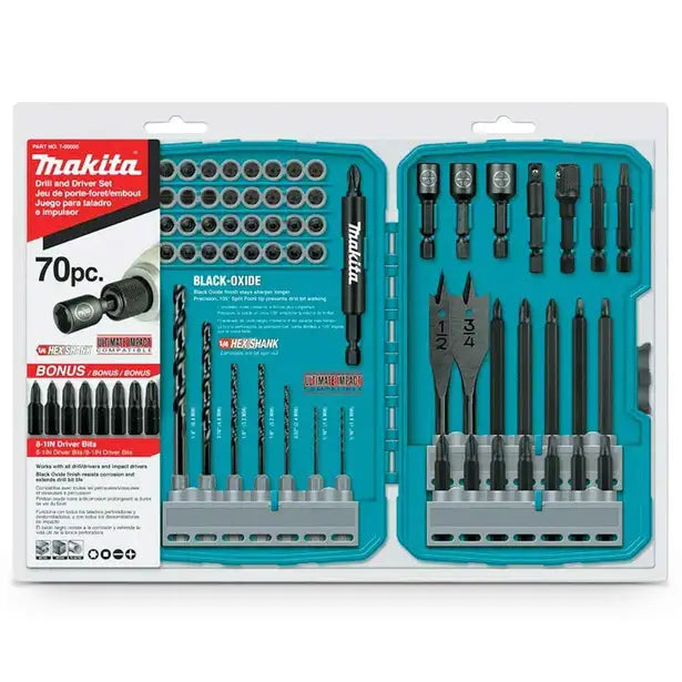 The MAKITA® ULTIMATE IMPACT T-01725 70-Piece Impact Screwdriver Bit & Drill Set offers a full range of solutions for drilling, driving and fastening.