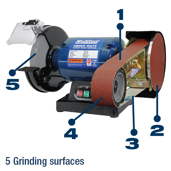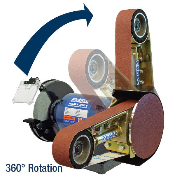 Combine the robust PO200HD MULTITOOL 200mm Bench Grinder with one of Australia's leading belt grinding attachments PO362.