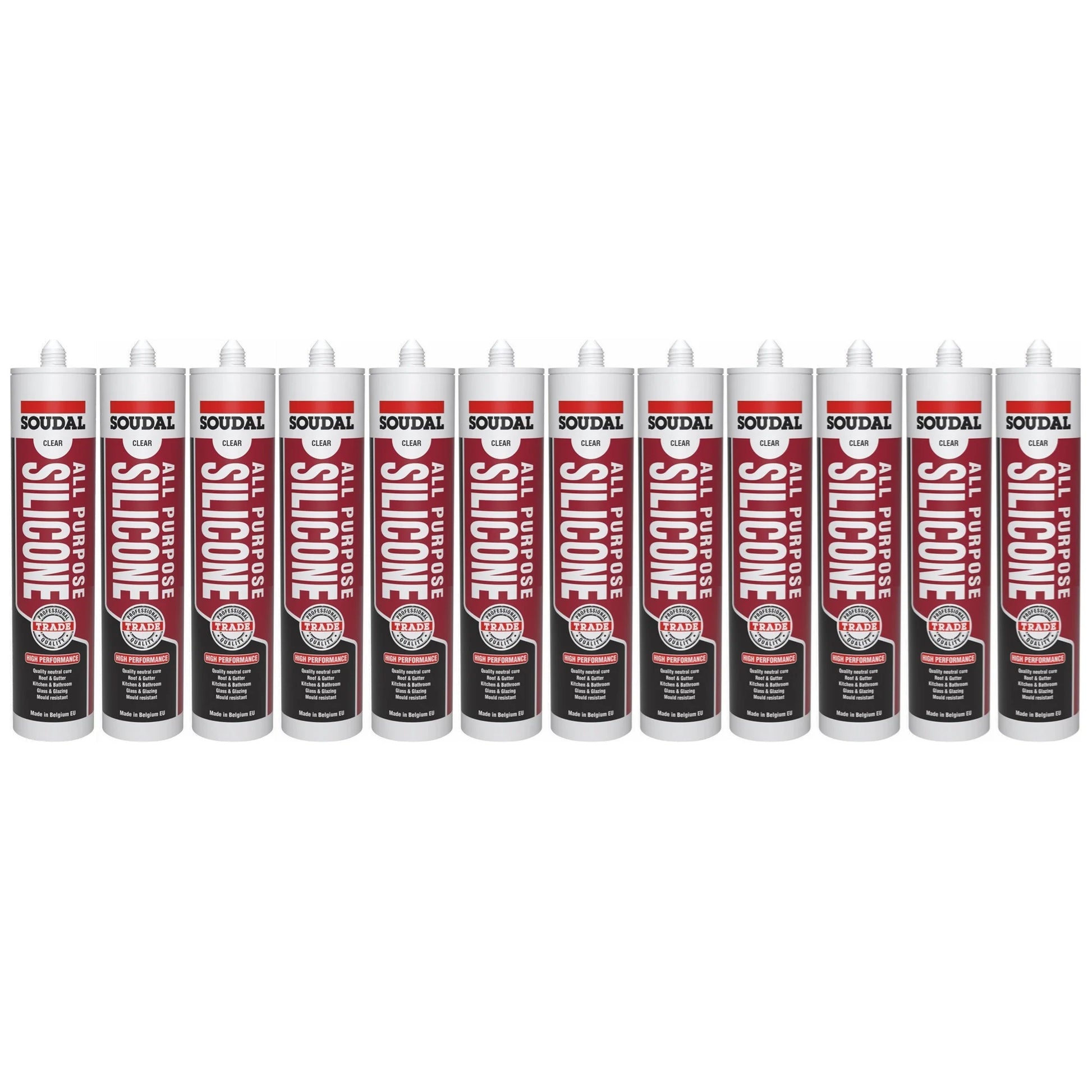 Soudal 121662 All Purpose Trade Silicone Kitchen Roof Glass - Clear 300ml (12 Pack)