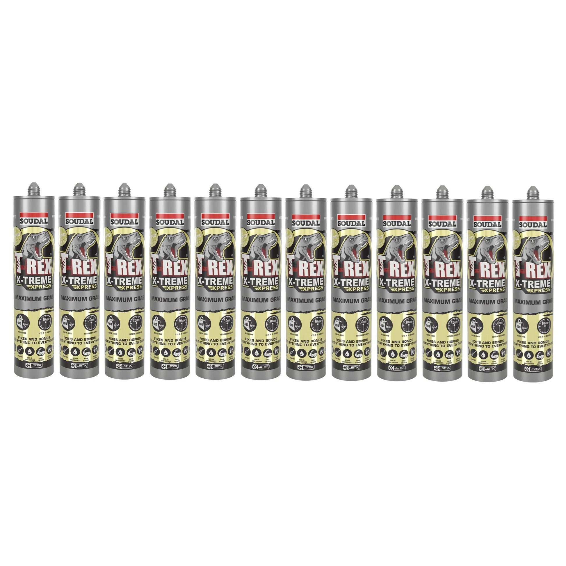 - T-Rex X-treme is a high quality, neutral, elastic, adhesive sealant has been developed for extreme tack for immediate bonding of extremely heavy materials without additional support. It is based on the unique SMX Polymer technology developed by Soudal with an extremely high initial tack of 400 kg/m²
