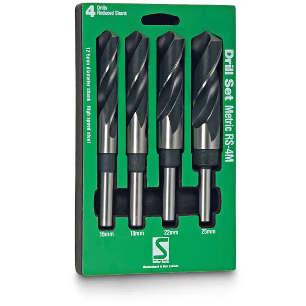 SUTTON 16-25MM METRIC HSS-BLUE REDUCED SHANK METAL DRILL BIT SET - 4 PIECE